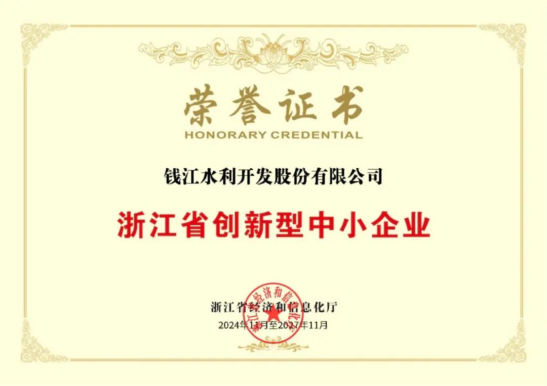 近日,浙江省經(jīng)濟(jì)和信息化廳公布2024年度第二批浙江省創(chuàng)新型中小企業(yè),中國水務(wù)所屬錢江水利開發(fā)股份有限公司(以下簡稱"錢江水利")成功入選,榮獲“浙江省創(chuàng)新型中小企業(yè)”稱號,標(biāo)志著公司在水務(wù)環(huán)保領(lǐng)域持續(xù)創(chuàng)新能力獲得權(quán)威認(rèn)可。