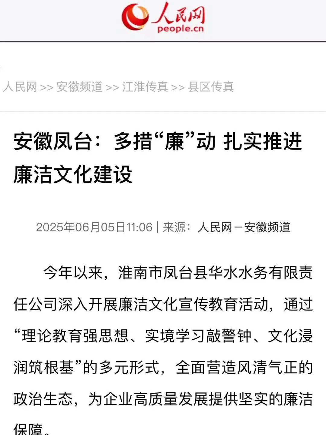 人民網(wǎng)、央廣網(wǎng)報道中國水務(wù)所屬華東區(qū)域總部多方“廉”動,擦亮廉潔底色