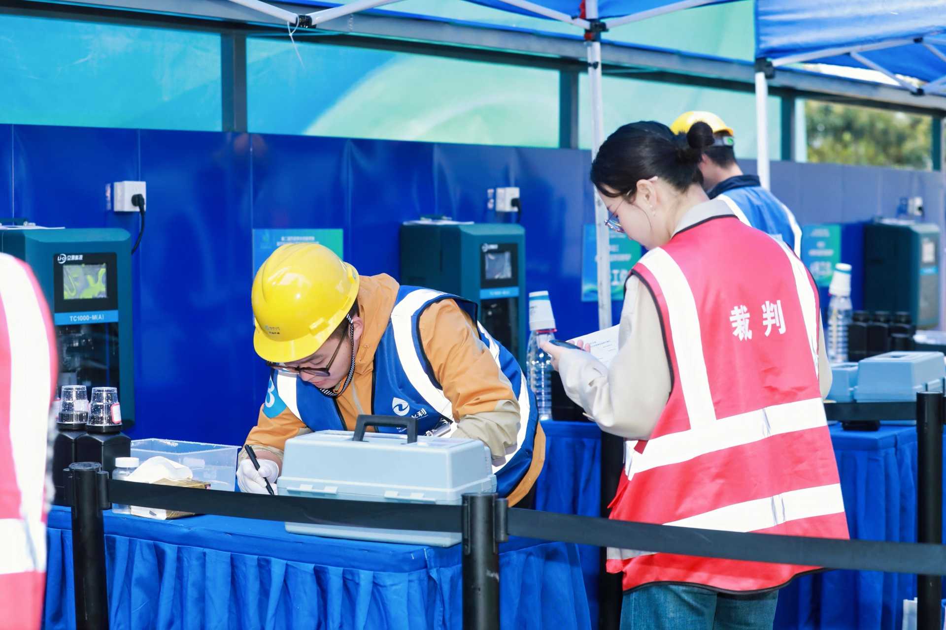 水質(zhì)在線監(jiān)測(cè)設(shè)備維護(hù)賽場(chǎng),選手們“快、準(zhǔn)、狠”完成校準(zhǔn)與故障排查,熟練程度獲專家一致認(rèn)可。