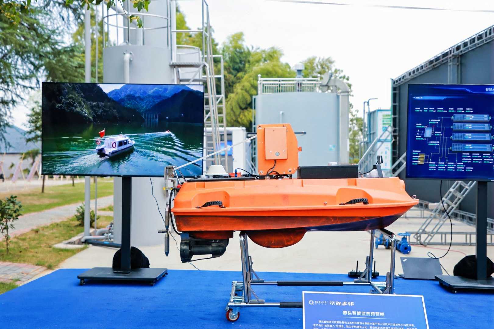 賽場(chǎng)一角,無(wú)人船、無(wú)人機(jī)、機(jī)器狗等智能巡檢設(shè)備及智慧加藥系統(tǒng)集中亮相,吸引眾多選手與嘉賓駐足。這些由錢江水利自行研發(fā)的新技術(shù)、新產(chǎn)品已在全省多地水源工程及山區(qū)海島縣的農(nóng)村供水項(xiàng)目中投入使用,為破解復(fù)雜地形下的巡檢難題、實(shí)現(xiàn)精準(zhǔn)投藥提供了高效解決方案,為實(shí)現(xiàn)優(yōu)質(zhì)供水 “一村不落、一人不少” 的目標(biāo)提供了有力技術(shù)支撐。