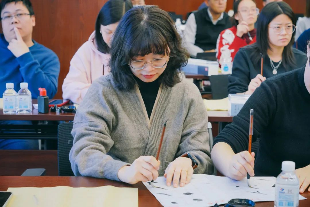 此次講座北京云澤堂書院院長,中國書法家協(xié)會會員,原中央國家機關(guān)書畫協(xié)會副主席,中國榜書書法家協(xié)會副主席,中國書畫家聯(lián)誼會理事,中共中央黨史和文獻研究院書畫藝術(shù)顧問薛鏞老師圍繞書法審美為主題,深入淺出地講解了如何欣賞一幅書法作品,通過書法的演變過程講解各個時期的審美特性。同時,課上薛老師指出,學(xué)習(xí)書法不能閉門造車,要多看多學(xué),不僅要學(xué)習(xí)書法理論知識,更要進行大量的實踐練習(xí),在博采百家之長的基礎(chǔ)上建立自己的學(xué)習(xí)框架和目標,才能不斷進步。