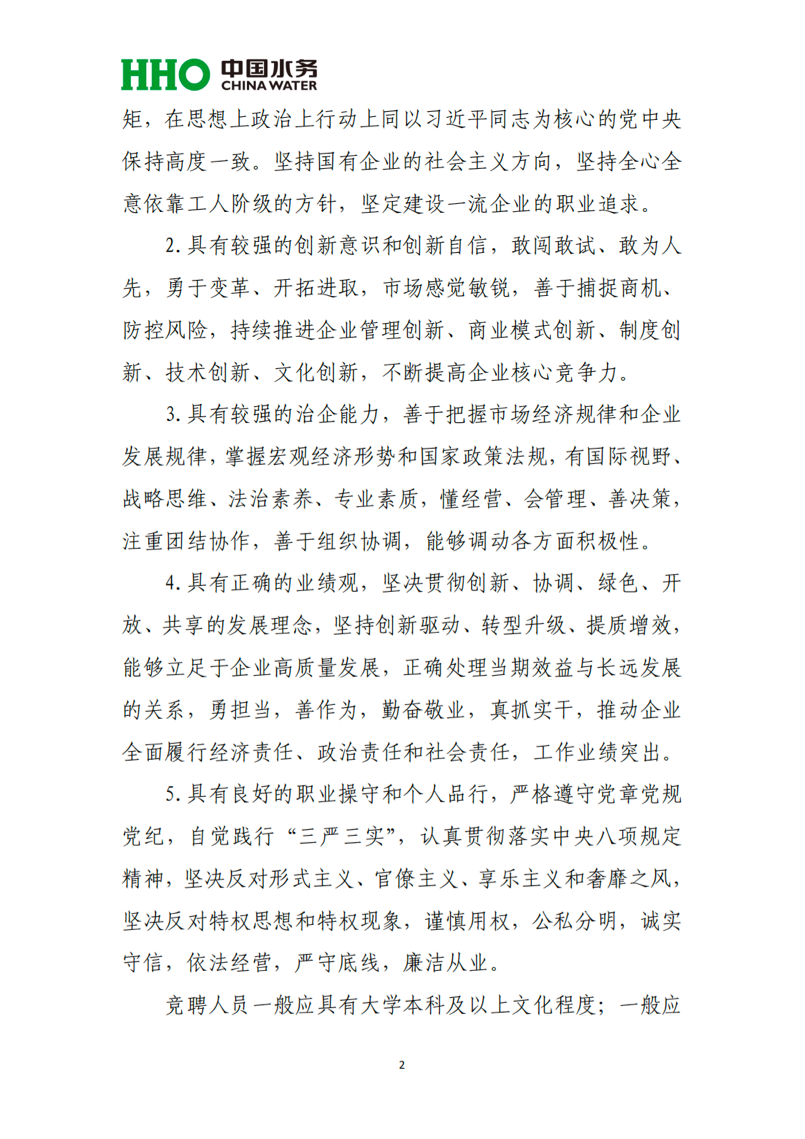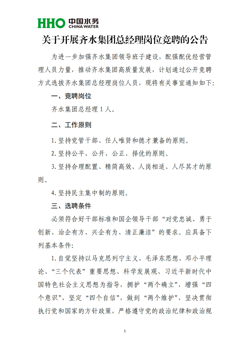 關(guān)于開展齊水集團(tuán)總經(jīng)理崗位競聘的公告