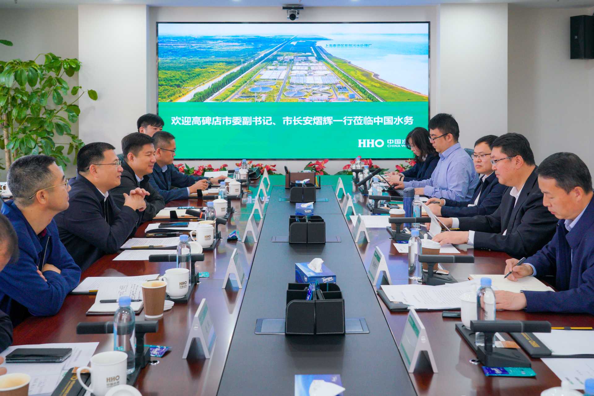 薛志勇對安熠輝一行到訪表示歡迎,介紹了公司的發(fā)展戰(zhàn)略和業(yè)務(wù)布局,中國水務(wù)以“十四五”倍增發(fā)展為目標(biāo),聚焦水務(wù)主業(yè),加快推進高質(zhì)量發(fā)展,將公司打造成國內(nèi)一流的水務(wù)投資運營和資本運作平臺。希望以此次交流為契機,與高碑店市政府展開深度合作,發(fā)揮中國水務(wù)運營能力、運營經(jīng)驗優(yōu)勢,打造高碑店市供水樣板,實現(xiàn)合作共贏。