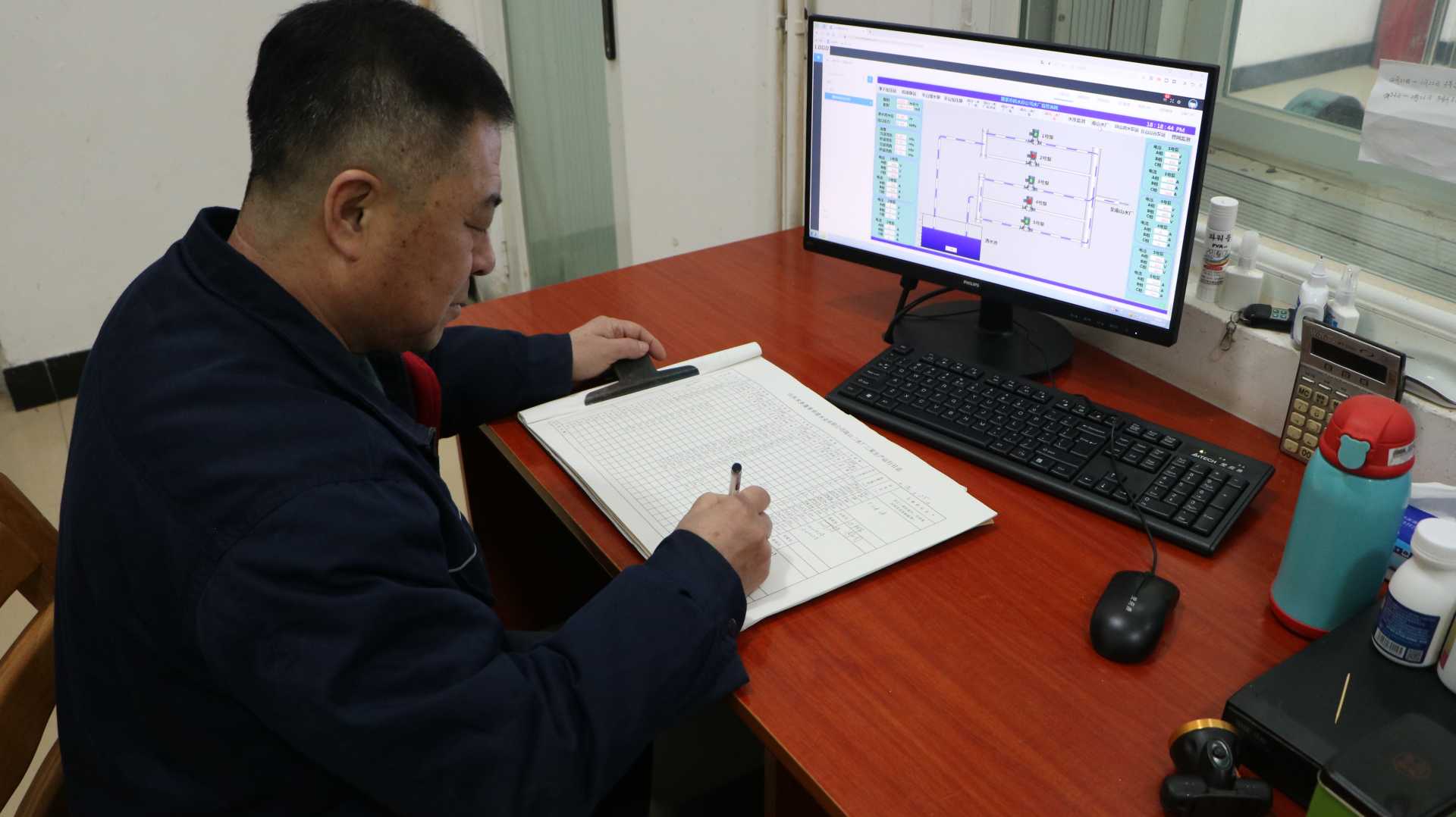 今年是周成國在山東水務(wù)蓬萊華建公司水廠工作的第16個年頭。2月2日是北方小年,這天大部分居民都會與家人團(tuán)聚,用水量較平時會有所增加。這天一早,周成國就全身心投入用水保障工作,時刻監(jiān)測著水質(zhì)水量情況。作為水廠一線工人,他承擔(dān)著維系供水泵房運(yùn)行的重大責(zé)任,必須一刻不停的盯緊水壓、水位數(shù)據(jù)并按時記錄,一旦發(fā)現(xiàn)問題要及時上報,絲毫不敢懈怠。“看到市民喝上放心水,樂享團(tuán)圓夜,即使不能與家人團(tuán)聚,我的心里也高興。”周成國說。