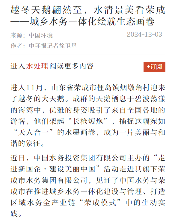 越冬天額翩然至,水清景美看榮成 --城鄉(xiāng)水務一體化繪就生態(tài)畫卷