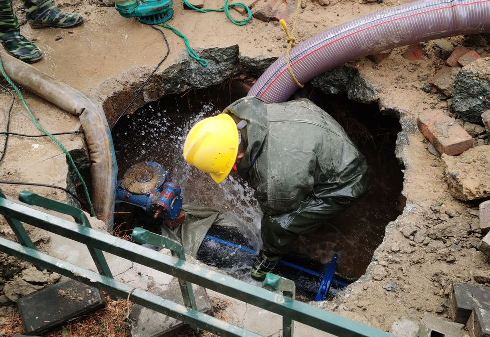 12月18日,青年東路DN600PE給水主管(人民公園-百貨公司拉管段)突發(fā)爆管漏水。邳州水務(wù)接到通知后,立即啟動(dòng)管道搶修應(yīng)急預(yù)案,出動(dòng)搶修人員90余人次、機(jī)械臺(tái)班3次、強(qiáng)力抽水泵2臺(tái)及抽水泵6臺(tái)。經(jīng)過全力搶修,已于次日下午完成修復(fù)管道漏點(diǎn)的工作,恢復(fù)供水。