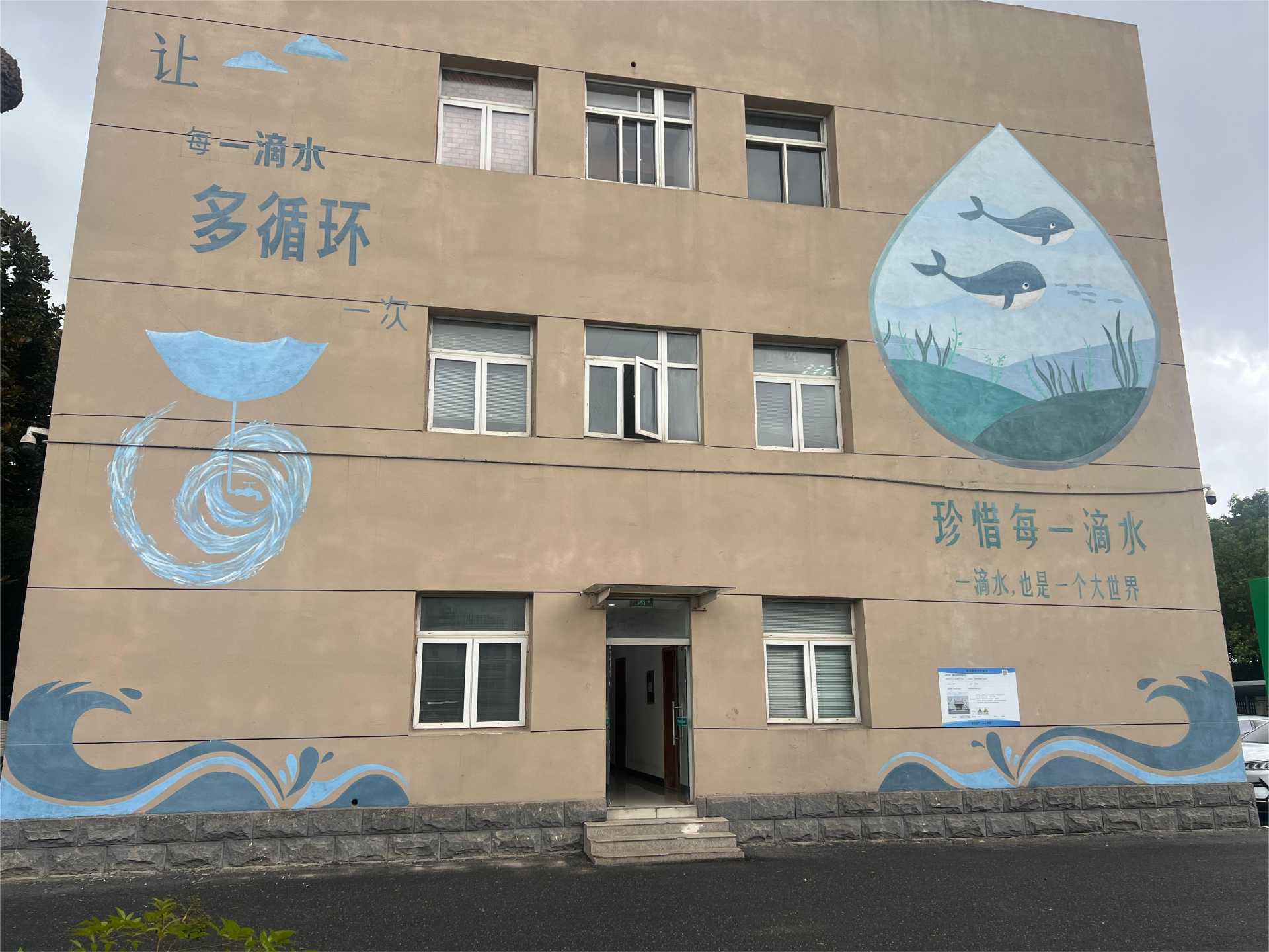 節(jié)水科普基地于2016年10月開始創(chuàng)建,分節(jié)水科普展廳和污水變凈水全流程生產(chǎn)線兩個部分。第一部分為室內(nèi)展廳,以水資源保護(hù)、基地3D實(shí)景圖、節(jié)水方法和器具展示等內(nèi)容為主。第二部分則由工作人員帶領(lǐng)參觀全流程生產(chǎn)線,展示污水處理全過程,另外,沿途設(shè)置停留點(diǎn)5個,通過展板和多彩墻繪介紹節(jié)水知識。