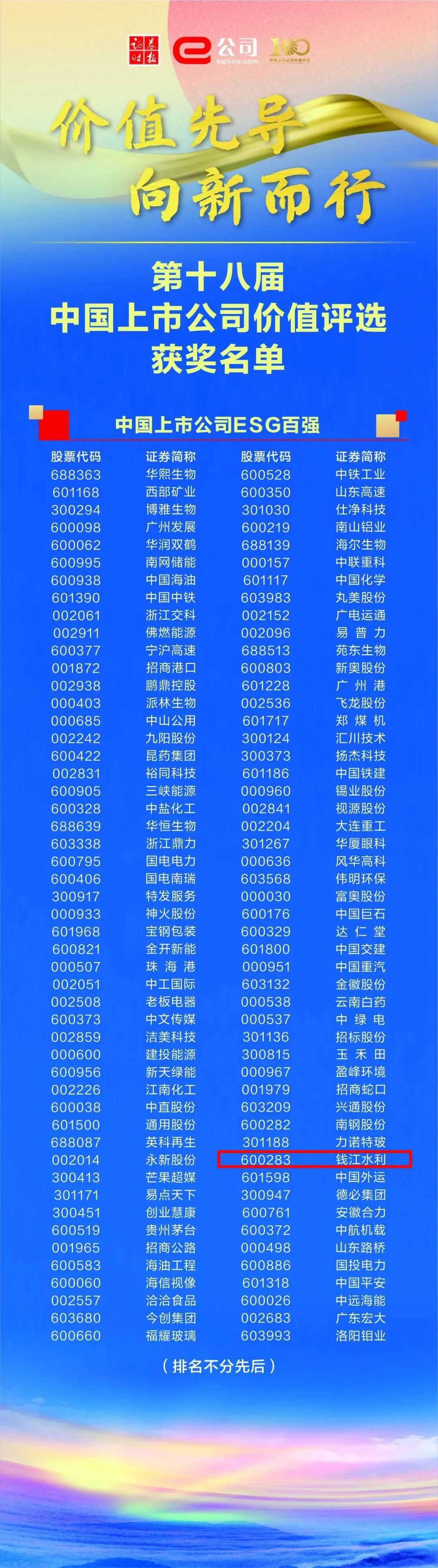 10月24日至25日,由證券時報社主辦的“第十八屆中國上市公司價值論壇暨2024新質(zhì)生產(chǎn)力巡禮”在昆山舉辦,中國水務所屬錢江水利開發(fā)股份有限公司以卓越的管理水平贏得了市場和投資者的廣泛認可,榮登“2024中國上市公司ESG百強”榜單。