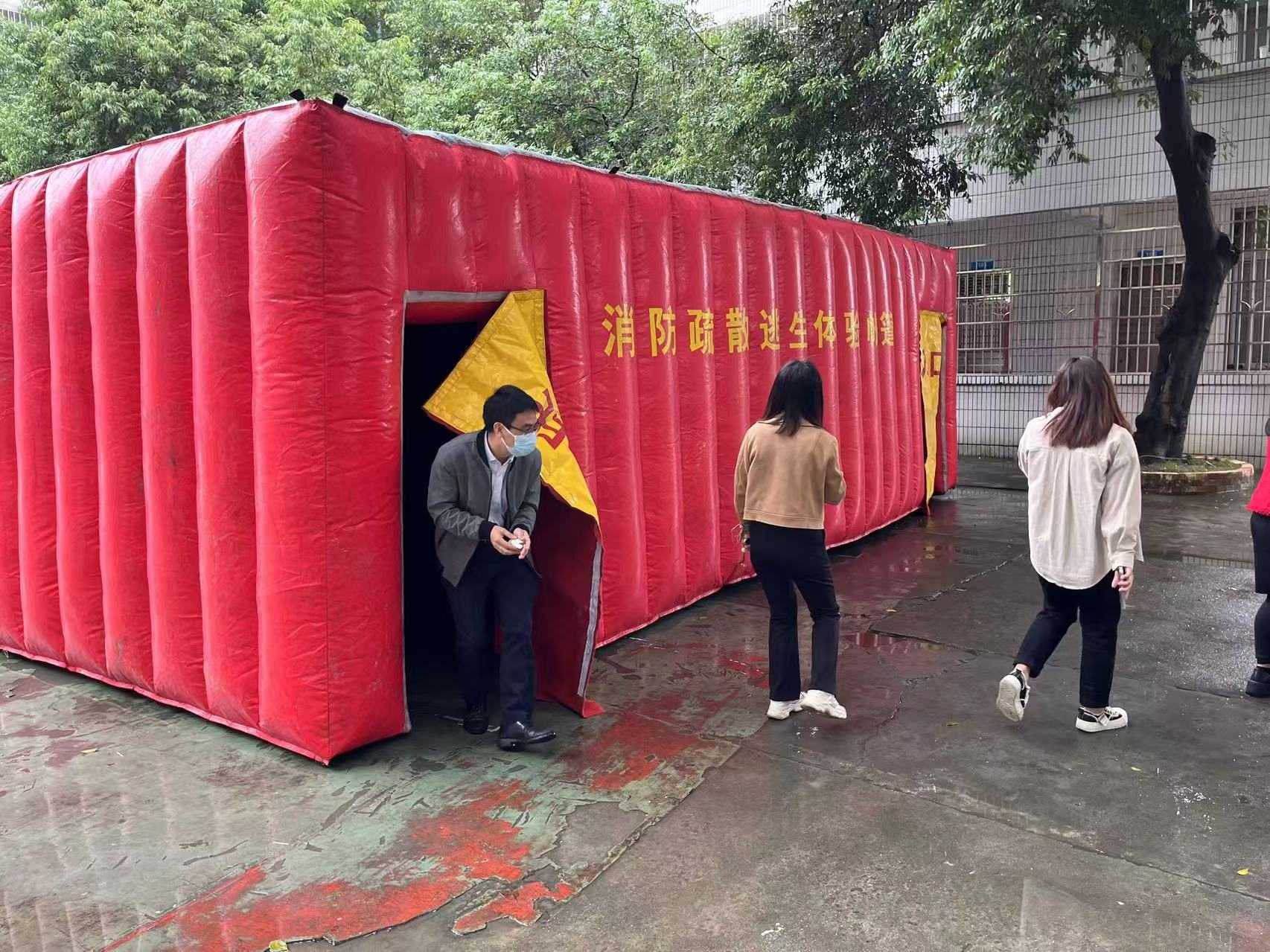 在消防技能現(xiàn)場實操教學(xué)環(huán)節(jié)中,消防工作人員現(xiàn)場指揮應(yīng)急疏散逃生演練,利用消防疏散逃生體驗帳篷模擬火災(zāi)場景,訓(xùn)練職工緊急時刻快速逃生能力;現(xiàn)場教授滅火器正確使用,職工依次實操演練,進一步強化消防器材使用技能。