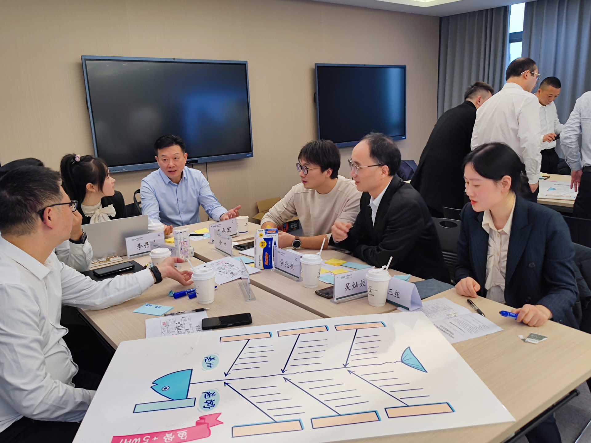 活動(dòng)中,四組學(xué)員圍繞“如何在業(yè)務(wù)開(kāi)拓時(shí)期發(fā)揮宣傳工作的作用”以及“如何將科技研發(fā)成果轉(zhuǎn)化為業(yè)務(wù)發(fā)展推動(dòng)力”兩個(gè)主題展開(kāi)深入討論?,F(xiàn)場(chǎng)氣氛熱烈,學(xué)員們積極參與,通過(guò)頭腦風(fēng)暴、團(tuán)隊(duì)列名、5why+魚骨圖分析法等多種研討工具,進(jìn)行了充分的交流和思考,尋找解決辦法,發(fā)揮了團(tuán)隊(duì)的智慧和力量。經(jīng)過(guò)熱烈的討論,學(xué)員們不僅消除了陌生感,建立了良好的團(tuán)隊(duì)協(xié)作關(guān)系,還對(duì)主題有了更深入的理解,找出了根本原因,并提出了一系列切實(shí)可行的解決辦法,涵蓋了宣傳策略、科技研發(fā)與業(yè)務(wù)融合等多個(gè)方面,為華中區(qū)域總部的發(fā)展提供了有益的參考。