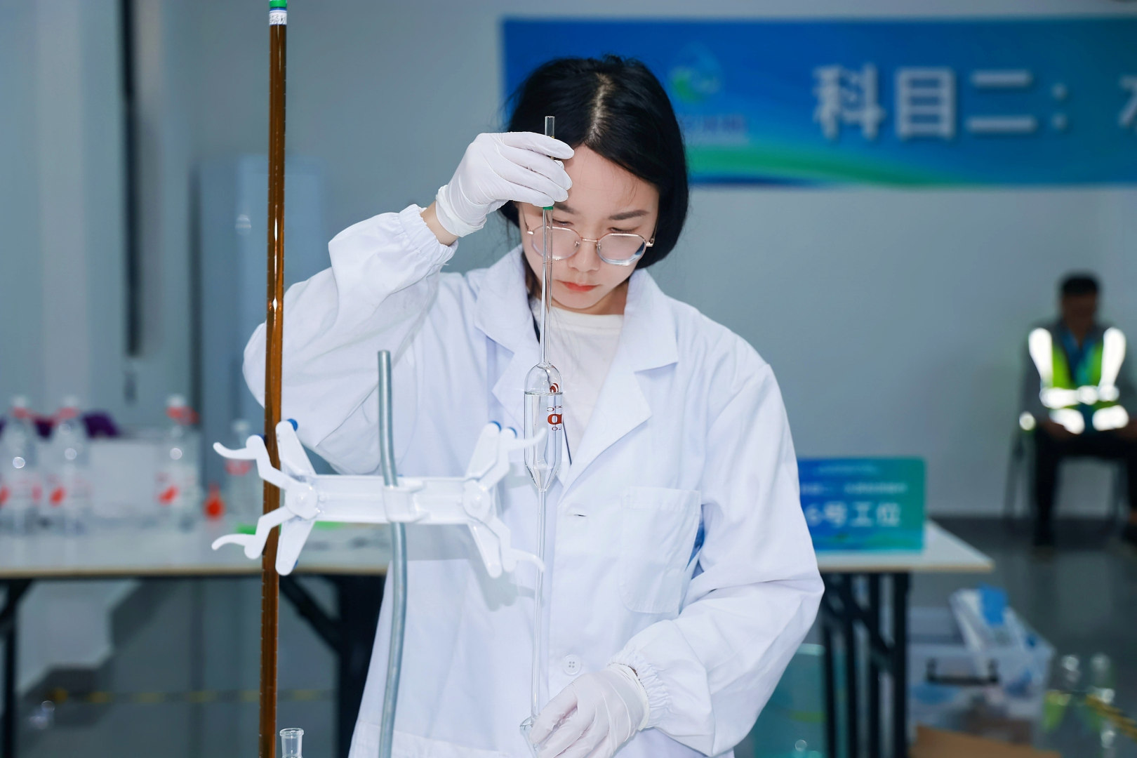 水質(zhì)檢測(cè)項(xiàng)目賽場(chǎng),選手們操作精準(zhǔn),誤差控制在±0.01mg/L以內(nèi),展現(xiàn)日常管護(hù)的真功夫。