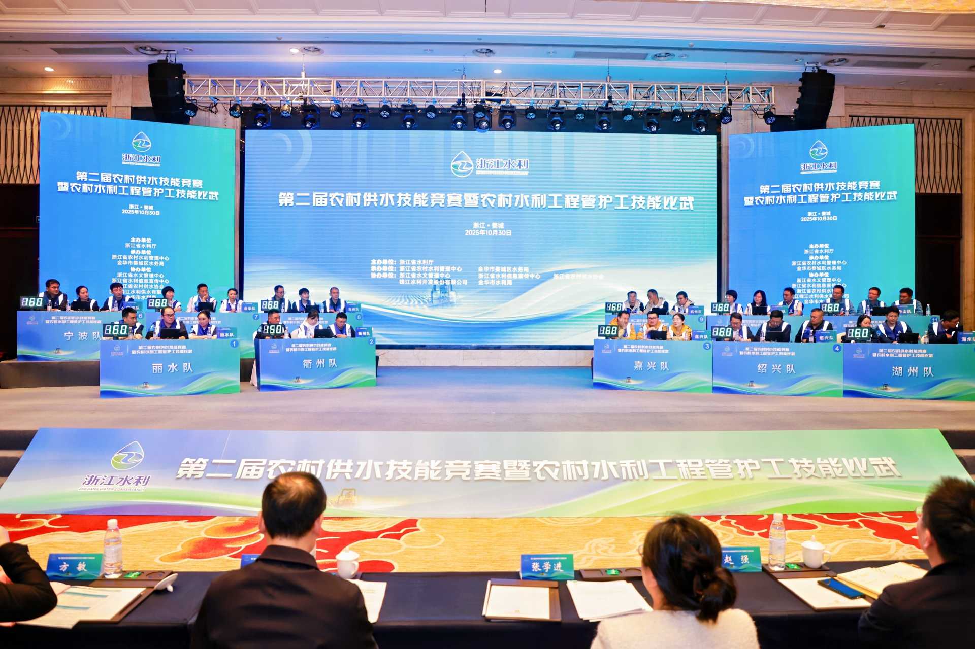 10月30日,由浙江省水利廳主辦的“浙江省第二屆農(nóng)村供水技能競(jìng)賽暨農(nóng)村水利工程管護(hù)工技能比武”圓滿落幕!這是在錢江水利農(nóng)村供水技術(shù)研發(fā)試驗(yàn)基地舉行的一場(chǎng)“水務(wù)精英對(duì)決”。來(lái)自全省11個(gè)地市的農(nóng)村供水技能精英齊聚基地,同臺(tái)競(jìng)技、切磋技藝,共同守護(hù)農(nóng)村供水“生命線”。水利部農(nóng)村水利水電司二級(jí)巡視員張學(xué)進(jìn),浙江省水利廳黨組成員、副廳長(zhǎng)朱留沙,省農(nóng)村水利管理中心主任方敏、廳人事處副處長(zhǎng)趙強(qiáng)等領(lǐng)導(dǎo)出席并現(xiàn)場(chǎng)觀摩比賽。